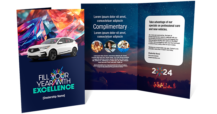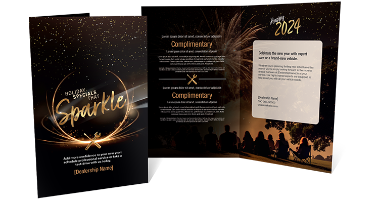 Engage customers with eye-catching 8.5" x 11" bifold cards in envelopes. Email available upon request.